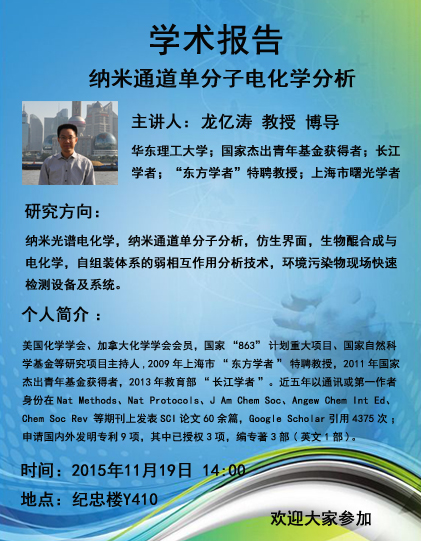 龙亿涛,华东理工大学教授、博士生导师,美国化学学会、加拿大化学学会会员,国家“863”计划重大项目、国家自然科学基金等研究项目主持人, 2009年上海市“东方学者”特聘教授,2011年国家杰出青年基金获得者,2013年教育部“长江学者”。