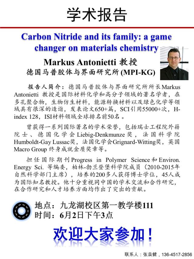6月2日学术报告通知(报告人Markus Antonietti 教授)