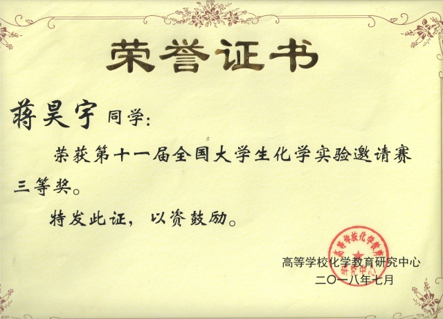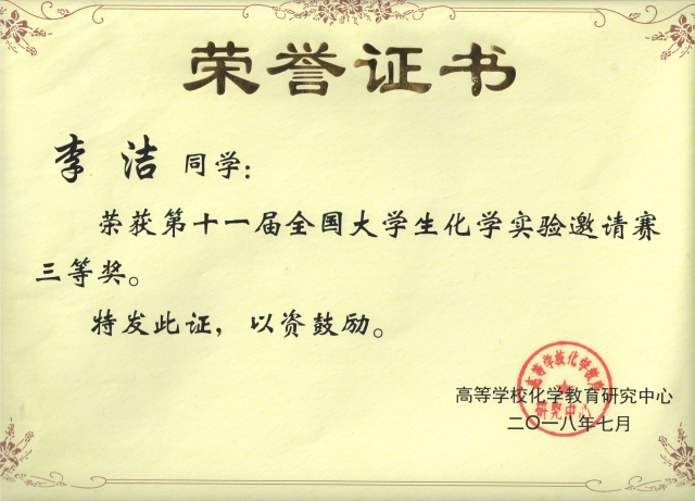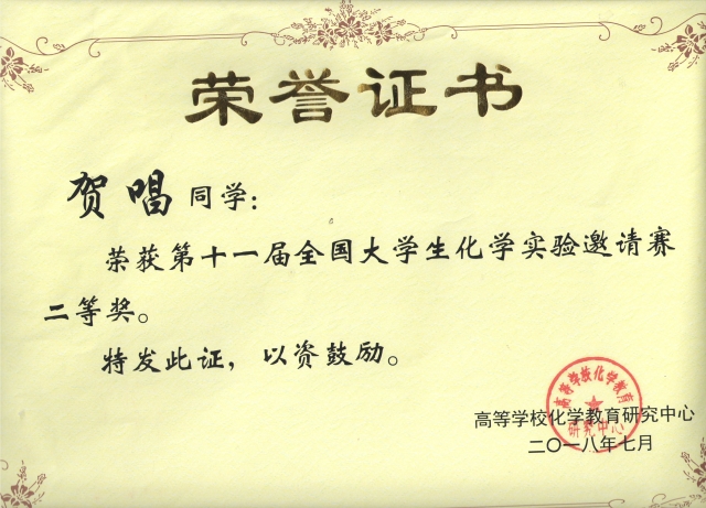 月7日,第十一届全国老员工化学邀请赛在福州大学举行。公司员工在陈金喜老师的带领下取得优异成绩。贺唱同学在比赛中荣获二等奖,李洁同学、蒋昊宇同学荣获三等奖!在此,对获奖的同学表示热烈祝贺!