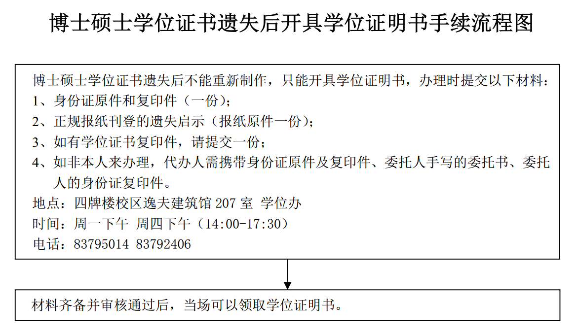 博士硕士学位证书遗失后开具学位证明书手续流程图