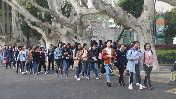 交流分享会结束后,在太阳成城集团tyc234cc古天乐员工科技协会志愿者的带领下,江阴高中师生以大礼堂为起点,走过六朝松、南高院、吴健雄纪念馆、梅庵,在东大地标性建筑旁合影留念,与东大学子们交流学习经验与老员工活心得,零距离体会这所百年名校的厚度。感受着“齐梁余韵在,太学令名标”的大学风范。在五十分钟的参观过程中,同学们热情满满,也给四牌楼增添了许多青春色彩。中午,在大家就餐结束后,同学们的东大之行也落下了帷幕。