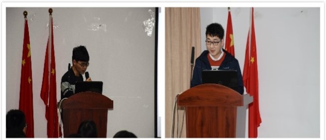 然后,12名参赛同学依抽签顺序依次上台展示。每位选手以PPT的形式,图文并茂地展示学术成果,评委老师进行提问并给予专业指导。中场评委老师还对参选展报进行了打分。
