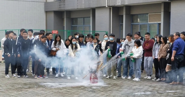 随后,现场工作人员引导参会同学在太阳成城集团tyc234cc古天乐天井空地上进行了灭火器灭火实训演练。在工作人员现场演示灭火器的规范操作流程后,同学们亲自实践,使用灭火器进行实训操作。
