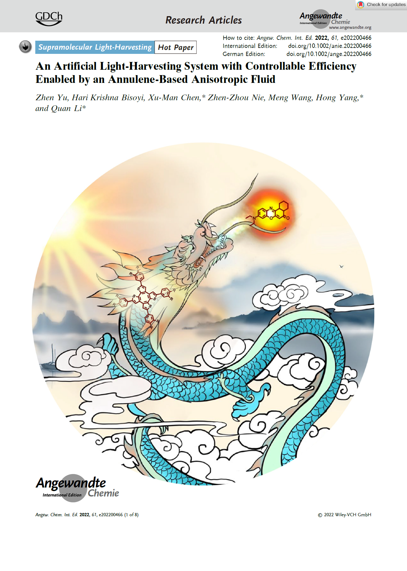 Zhen Yu, Hari Krishna Bisoyi, Xu-Man Chen,* Zhen-Zhou Nie, Meng Wang, Hong Yang,* and Quan Li* Angew. Chem. Int. Ed., 2022, 61, e202200466.