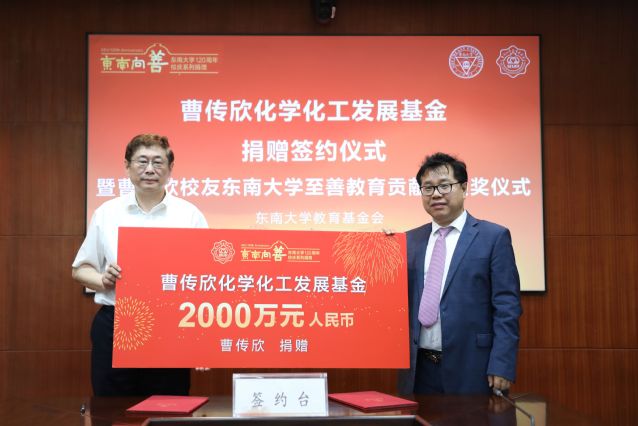 曹传欣介绍,此次捐赠主要有两点原因:一是为了报答母校。他表示,16岁到东大求学,从留校任教到离开母校创业,在公司度过了十多年最快乐、最难忘的时光;二是为了履行企业家的社会责任,反哺社会。最后,曹传欣祝愿母校越办越好,为社会输送更多杰出人才。