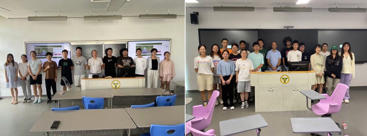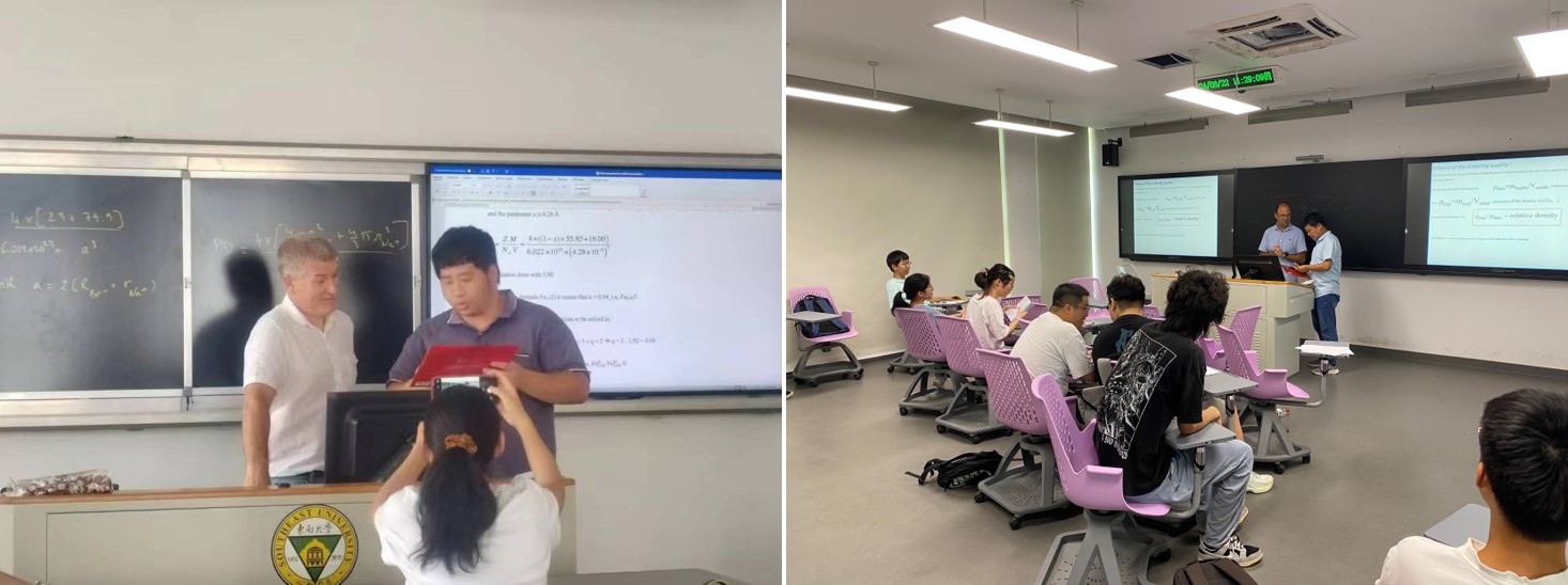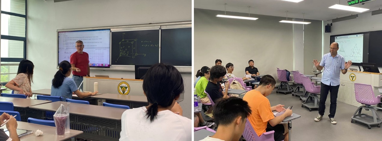 法国雷恩一大David Le Coq教授在《固体化学》(左)、Laurent Calvez教授在《光功能材料》(右)课上的讲课